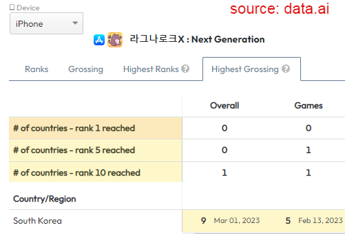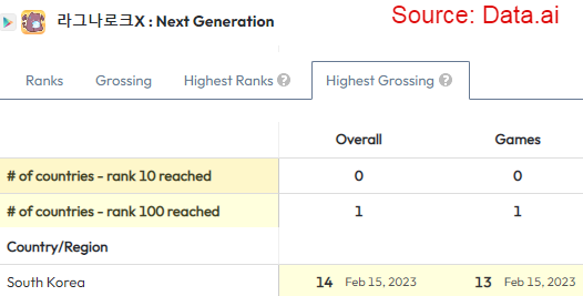 For the first time since July 2020 (Ragnarok Origin release), Gravity released an “A” game in South Korea, their home ground, with Ragnarok Next Generation (ROX). As a reminder, South Korea is the 4th biggest market worldwide in terms of in-app spending, nothing less.