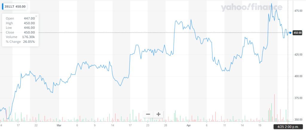 - Aiming’s stock closed at JPY 449 as of April 25th, up 26.48% since their earnings (to be fair, the stock had been battered since the new year!)